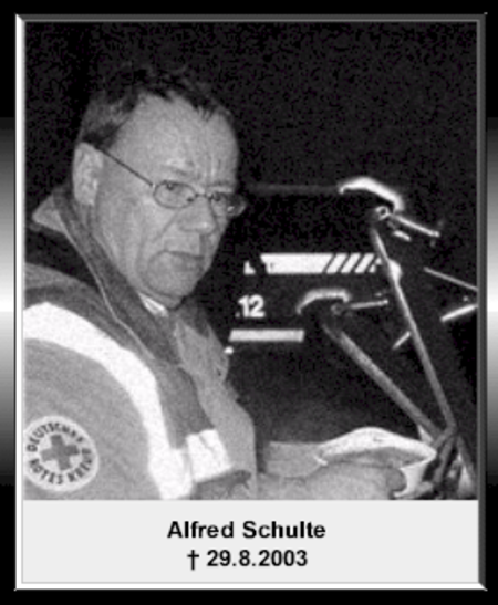 Sein kameradschaftliches und vorbildliches Verhalten verdient besonders erwähnt zu werden. Er war stets da, wenn man ihn brauchte. Hierfür gilt unser aufrichtiger Dank. Das DRK Marl verliert mit Alfred Schulte einen verdienten und treuen Kameraden.