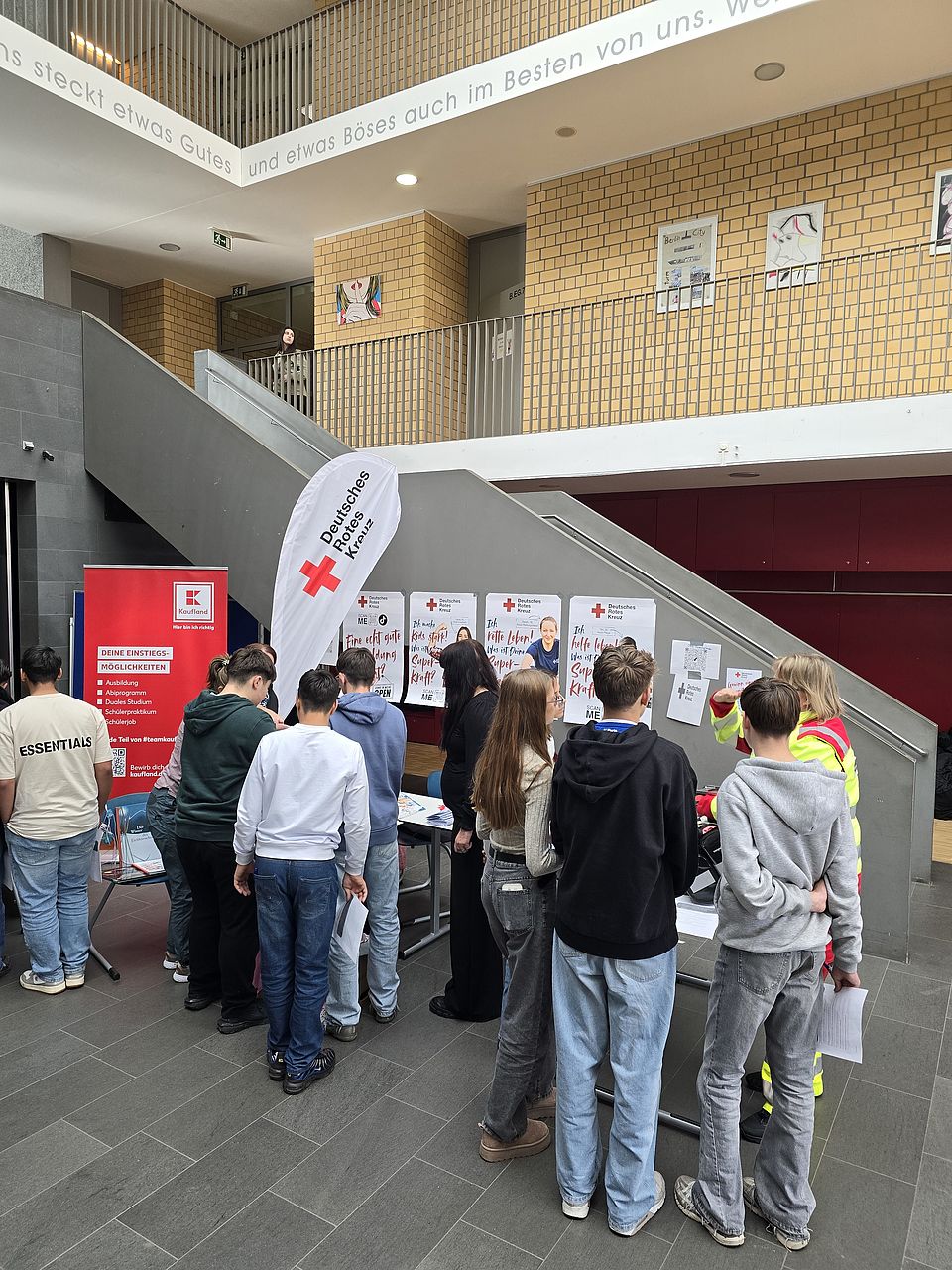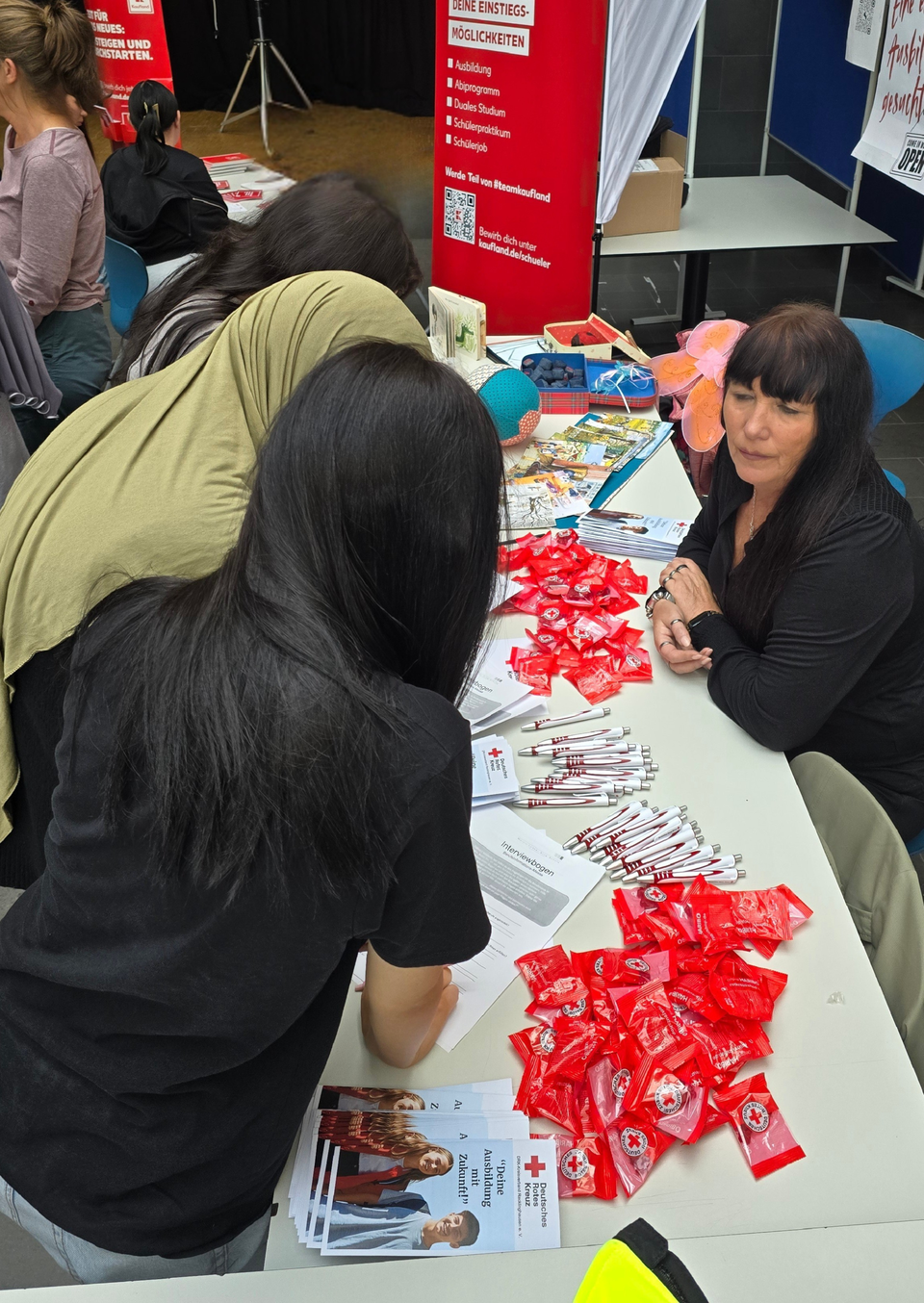 Bei der diesjährigen Berufsmesse an der Martin-Luther-King-Gesamtschule in Marl war unser Kreisverband mit seinen drei ausbildenden Bereichen Rettung, Kita und Pflege vertreten, die den Schülerinnen und Schülern Rede und Antwort standen. Wir haben uns sehr über das große Interesse an den Berufsbildern Erzieher/in, Notfallsanitäter/in und Pflegefachfrau/-mann gefreut und hoffen, den einen oder die andere in der Zukunft als neue Azubis bei uns willkommen zu heißen. Herzlichen Dank an die MLK-Schule Marl für die hervorragende Organisation!