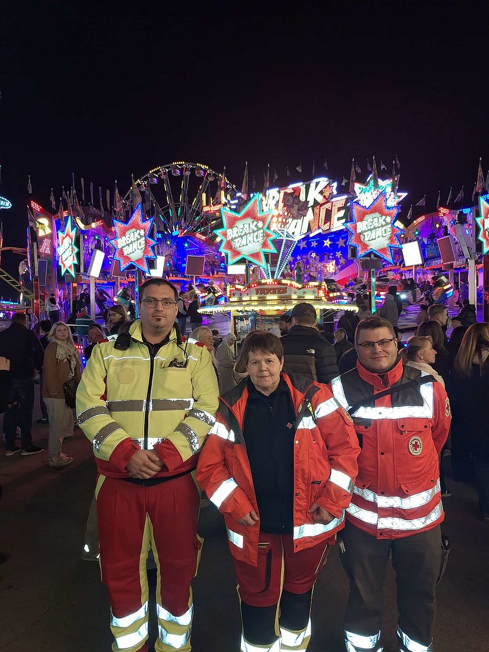 Unter der Woche sind wir mit zehn, am Wochenende mit 14 Helferinnen und Helfern vertreten, betreiben einen Behandlungsplatz in der Vestlandhalle und sind als Erstversorgungsteams für die Besucher der Kirmes jederzeit ansprechbar.